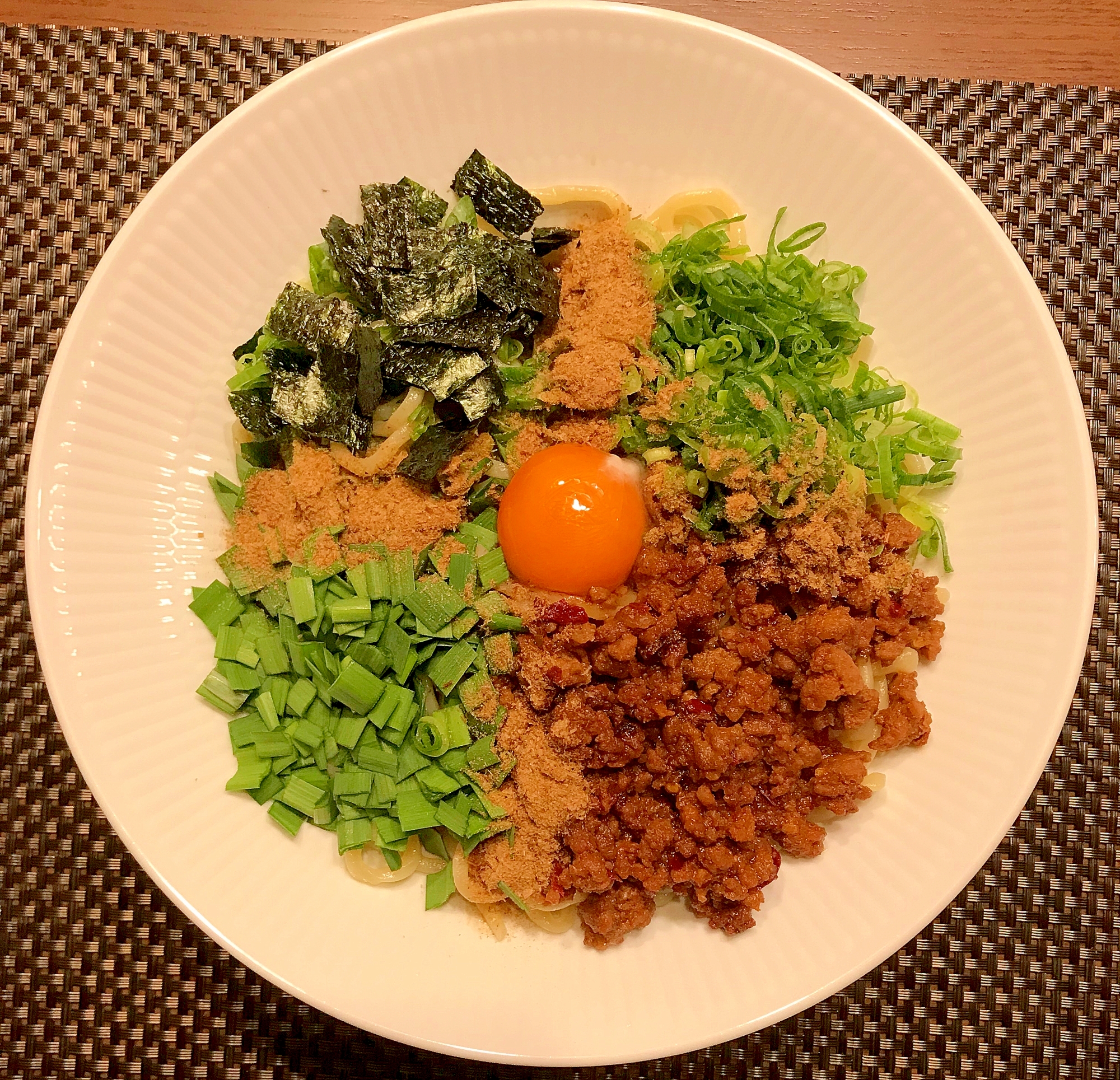 山本ゆり S Instagram Photo めっちゃ簡単 台湾混ぜそば 辛めの濃い味ミンチに卵黄 全卵でも 薬味をたっぷり絡めて食べる混ぜそば ミンチはレンジで1発 めちゃくちゃ簡単です 魚粉はかつお節で代用 無ければ顆粒だしの素をサッと振っても 冷凍